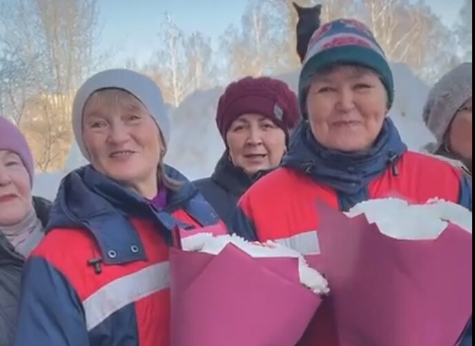 Жильцы дома на проспекте Строителей, 32 решили в преддверии Международного женского дня порадовать дворников. На собранные деньги они купили цветы и отправились к двум сотрудницам. Они вдвоем обслуживают 10 подъездов.