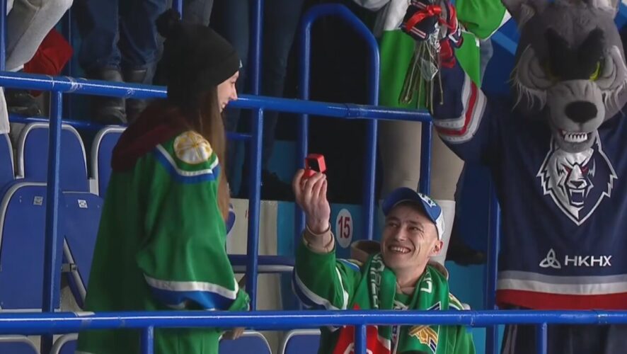 В Нижнекамске в «Нефтехим Арене» во время хоккейного матча молодой человек сделал предложение свой возлюбленной. Это произошло во время матча «Нефтехимика» с «Салаватом Юлаевым».
