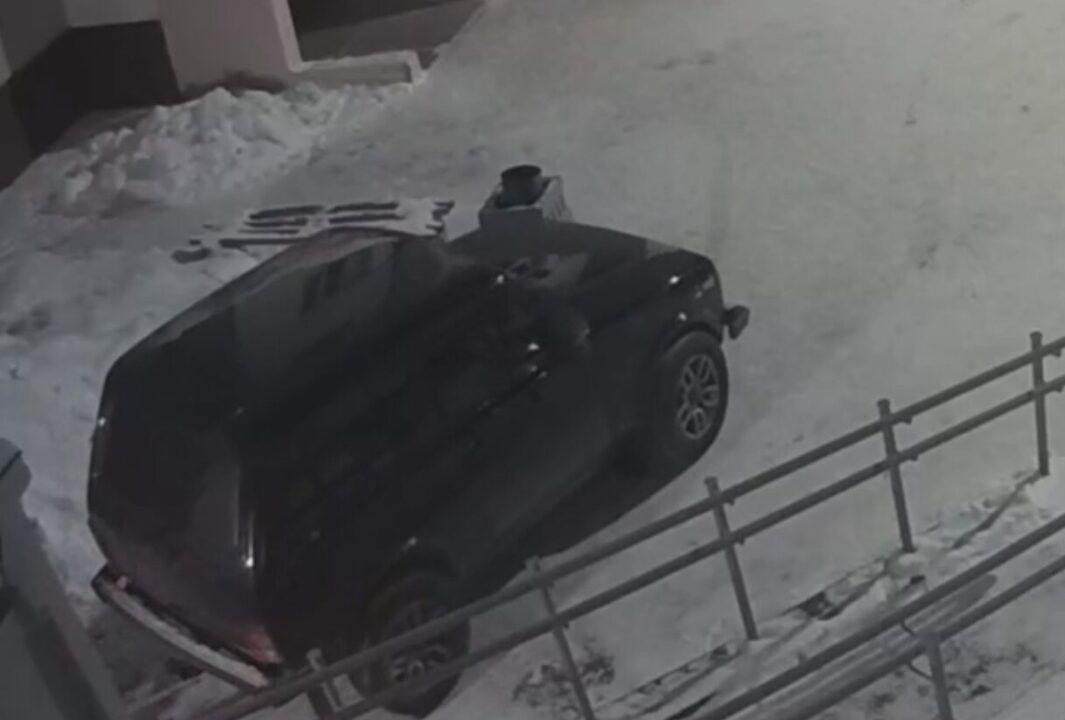 Молодые люди задним ходом подогнали внедорожник к подъезду на проспекте Мира, 105, прицепили трос к фаркопу и входной двери. После пары неудачных попыток взлома компания уехала.