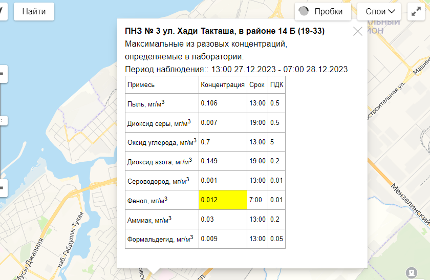 В воздухе Набережных Челнов вновь зафиксировали превышение концентрации фенола. Данные с пункта наблюдения опубликовал Гидрометцентр Татарстана.