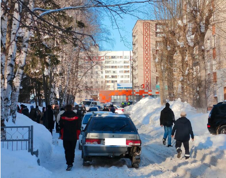 Учащихся вывели на улицу.