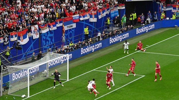 Да, российской сборной нет на футбольном поле, но это вовсе не значит, что ее совсем не будет на Евро-2024. И открытие чемпионата Европы, так или иначе, не прошло без участия России. Российские болельщики вывесили российский флаг на матче-открытии Евро-2024 Германия — Шотландия (5:1) и на матче между Сербией и Англией. На трансляции было видно, как российский триколор был размещен рядом с сербским флагом.
