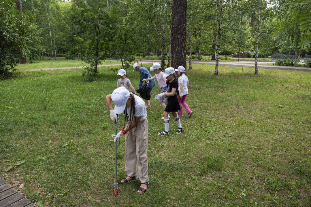 По окончании экосмен, где детей научили сортировать мусор, заботиться об окружающей среде и экономить природные ресурсы, полторы сотни младшеклассников провели в городском парке им. Урицкого масштабный субботник.