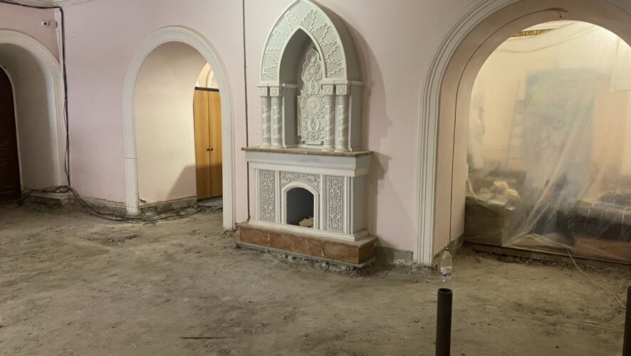 На втором этаже похожая картина. В одной из комнат, которую представили как «Дубовый зал», сохранился только старинный камин, ранее скрытый от глаз зрителей театра за гипсокартонной конструкцией. Как пояснила директор Казанского ТЮЗа Айгуль Горнышева, его решили спрятать от детей, которые занимались в Дубовом зале.