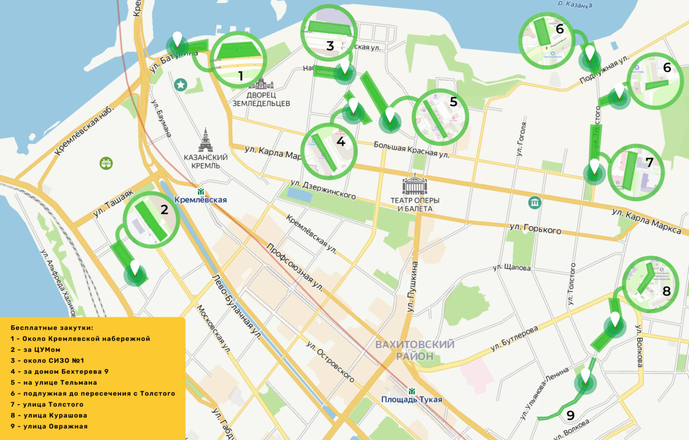 Однако несмотря на постоянные появления платных парковочных зон, в центре Казани все еще остались закутки, где можно оставить своего железного коня бесплатно. Их, конечно, с каждым годом остается все меньше, но, тем не менее, если постараться или приехать немного раньше на работу, можно найти. Корреспондент KazanFirst прошелся по центральным улицам и выписал несколько таких мест.