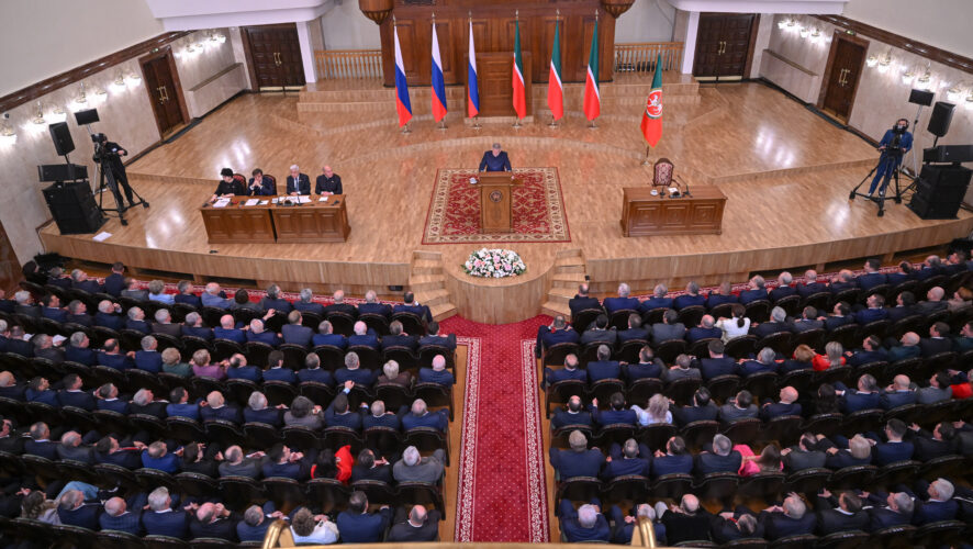 Рустам Минниханов выступал с ежегодным посланием Госсовету республики впервые после избрания раисом республики на новый срок. В БКЗ им. Сайдашева собрались около 700 человек. Выступление продлилось более часа и стало одним из самых содержательных за последние годы.