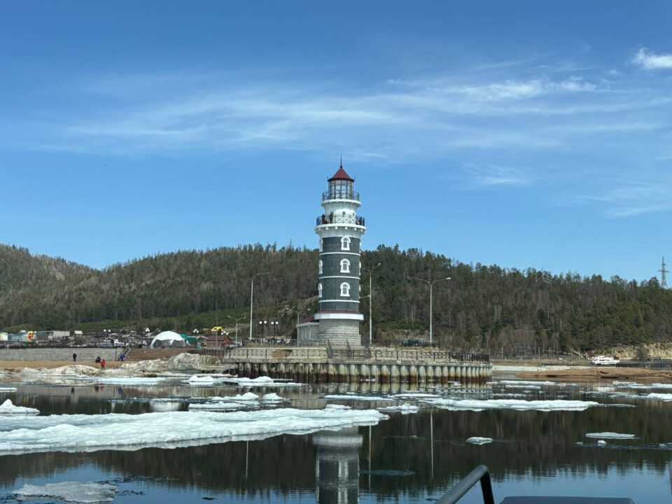 Каких-то полтора часа и вот оно — священное озеро Байкал. Сказать, что он красив, — не сказать ничего. Лазурные воды видны издалека. Несмотря на середину мая, на озере еще сохранился ледяной покров. Небольшие льдины, толкаясь, рассыпаются на тысячи острых игл, которые, как в таинственном хороводе, смещают друг друга вниз, освобождая лазурь воды. На берегу, где была сделана наша остановка, возвышается маяк. Практического смысла он не несет и является излюбленным местом туристов. Поднявшись наверх, можно увидеть необъятную мощь и красоту озера.