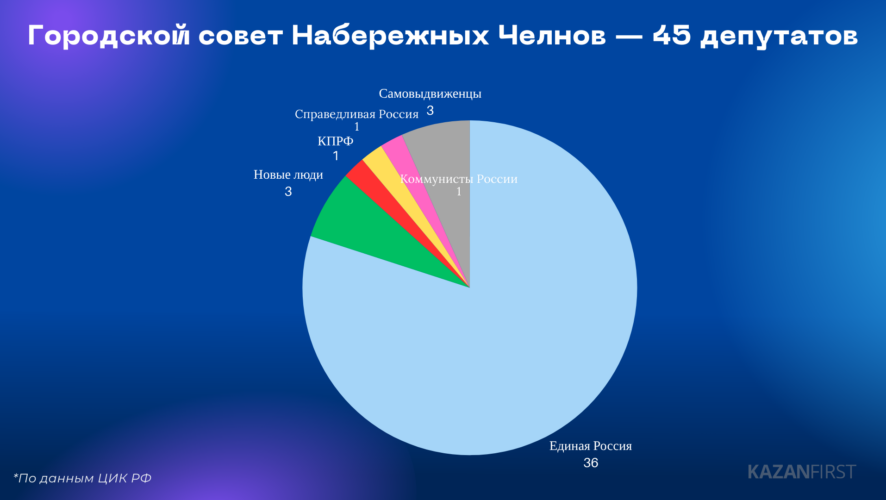 В Набережных Челнах «Единая Россия» набрала 69,8%. Партсписок возглавлял действующий мэр автограда Наиль Магдеев. С учетом одномандатников единороссы получают в городском совете 36 из 45 мест.