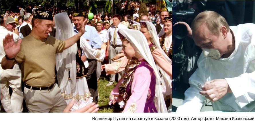 Вторым знаменитым Сабантуем с политическим подтекстом стал казанский 2000 года. В нем принял участие уже Владимир Путин. Этот Сабантуй хоть и проводился после выборов, но так же негласно имел определенные политические цели. В ходе праздника новый президент России продемонстрировал народу свою открытость, ловкость и удачу. Он состязался в армрестлинге, правда, в шутливой форме – с девушкой, задорно плясал, но самое главное – поразительно удачно вынул монету из таза с катыком. А это не просто сделать. Помог ли кто-то Путину, остается загадкой. Как бы то ни было, но этот казанский Сабантуй вошел в историю, продемонстрировав стране и миру молодого восходящего лидера. Вскоре видеокадры и фотографии Путина с лицом в катыке и с монетой в руке обошли все мировые средства массовой информации.