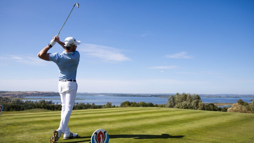 Атмосферное фото, такое ощущение что спортсмен так хорошо врезал клюшкой по мячу, что тот прямиком улетел в Свиягу