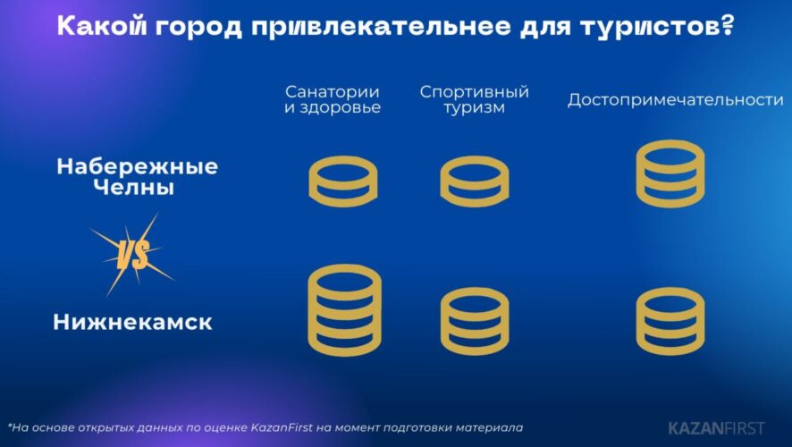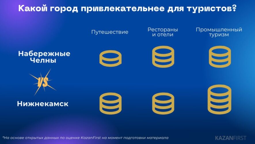 Спору нет, Казань — первоочередная цель туристов в Татарстане. Однако если появляется желание выехать за пределы столицы республики, то выбор направления уже не так очевиден. Редакция KazanFirst решила устроить своеобразную дуэль между двумя крупными городами региона: Нижнекамском и Набережными Челнами. Чтобы выяснить, где же туристы смогут потратить свои сбережения с большей эффективностью.