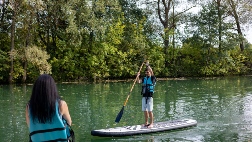 Нарушители не только лезут в воду там, где нельзя, но и умудряются заезжать на транспорте на территорию. В пример Шарафутдинов привел детей на питбайках и сап-серферов. К слову, на последнем кататься можно, но в специально отведенном месте, которое находится на территории Большого Голубого озера. На берегу Казанки блогер Булат Закиров открыл прокат сапов, байдарок и каяков.