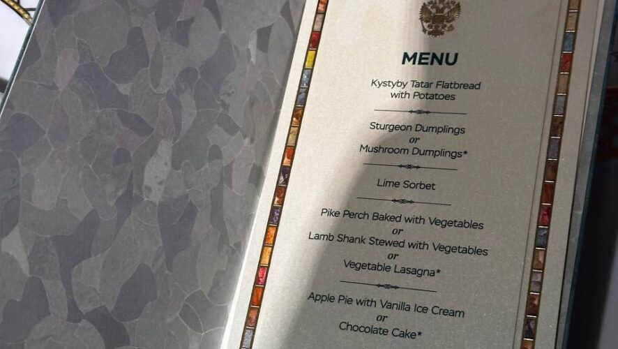 Кстати, многим было интересно, чем кормили в Казани первых лиц. В соцсети утекло фото меню, которое, предположительно, было у гостей саммита БРИКС в Казани. Если верить содержанию этого меню, лидеров стран угощали татарским кыстыбыем, пельменями из осетра либо пельменями с грибами. Также предлагались судак, тушеная баранья голень, овощная лазанья. На десерт лидеры могли выбрать сорбет из лайма, яблочный пирог с мороженым и шоколадный торт. Из напитков предлагались два сорта вина – Riesling, Krinitsa Winery (Russia, 2021 г.) и Rivage Blend, Krinitsa Winery (Russia, 2020 г.).