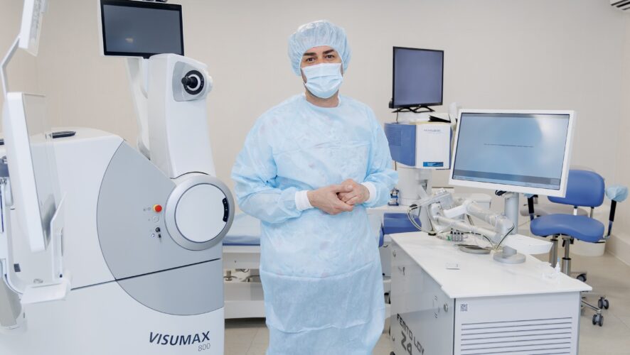 — Если говорить о возрасте 40+, то у нас есть несколько технологий. Например, человек не хочет носить очки — тогда мы предлагаем ему сделать замену собственного хрусталика на искусственный, который ориентируется на разные расстояния. Также при помощи лазера мы корректируем потребность хорошо видеть после 40 лет на разных расстояниях. Эта технология называется PresbyMax. Она проводится при помощи эксимерного лазера.