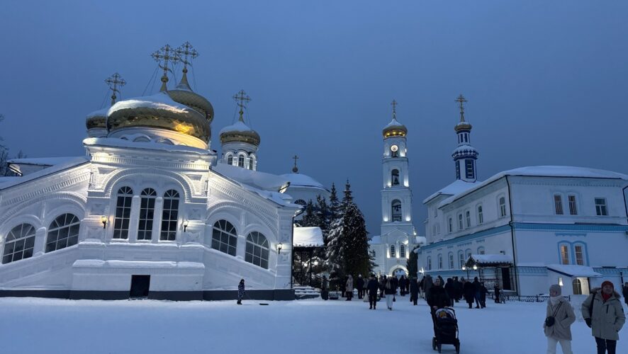 Вечером к Раифскому монастырю собралась автомобильная пробка. Затор начинается прямо от трассы, из-за чего движение сильно замедлилось.