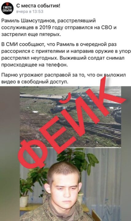 В интернете распространилась информация, что срочник Рамиль Шамсутдинов, который в 2019 году убил 8 своих сослуживцев, совершил массовое убийство в зоне специальной военной операции. Эта информация является фейком, сообщил в своем Телеграм-канале адвокат молодого человека Руслан Нагиев.