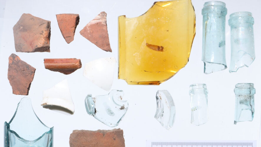Среди находок были фрагменты круговой керамики и костей, стеклянных бутылей и фарфоровых изделий, предметы из железа. Вероятно, эти вещи были связаны с действовавшим с 1878 года на прилегающей территории винным складом. Сейчас он признан объектом культурного наследия регионального значения «Здание реального училища (бывший казенный винный склад)».