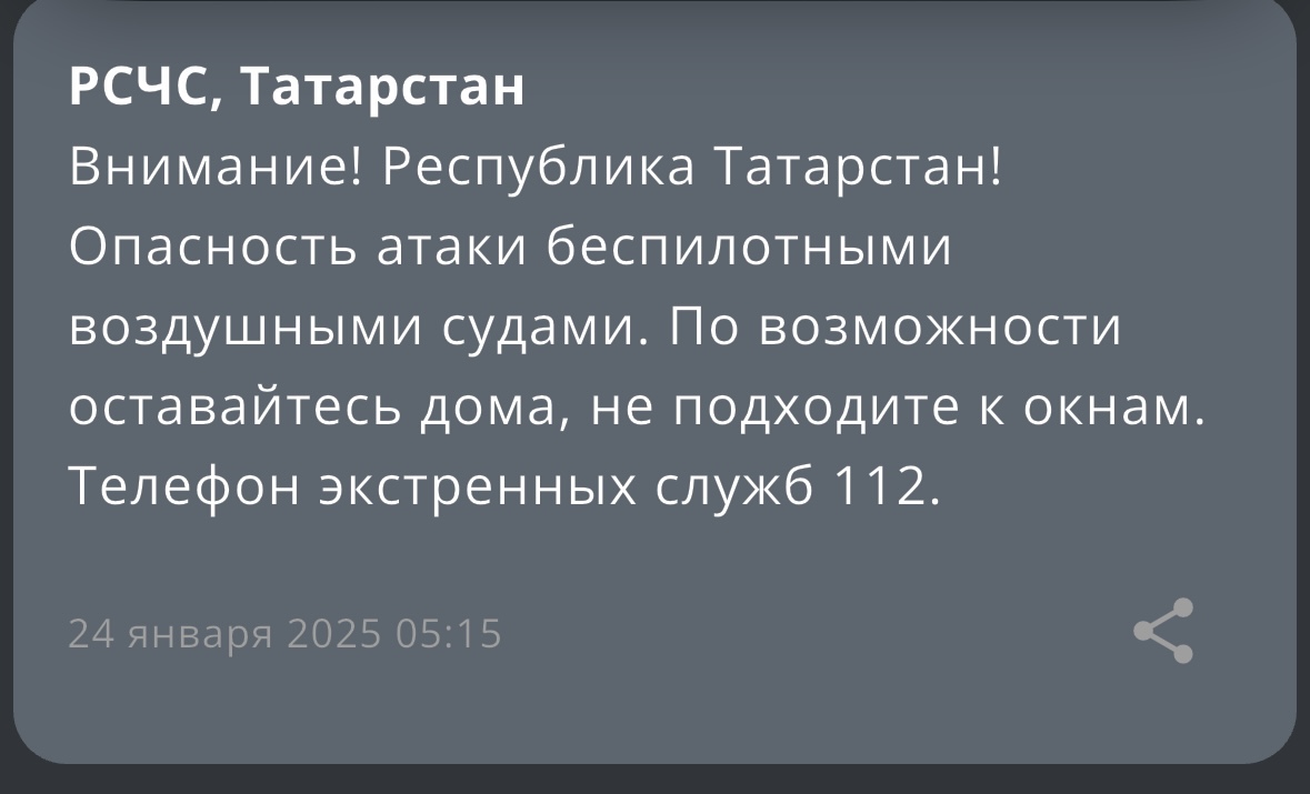 Утро пятницы, 24 января, началось для жителей и гостей Татарстана с объявленой опасности атаки БПЛА. Первое сообщение от МЧС пришло ещё около трех утра. Через пару часов Росавиация объявила о закрытии сразу двух аэропортов республики — в Казани и Нижнекамске. План «Ковер» был введен для безопасности полетов.
