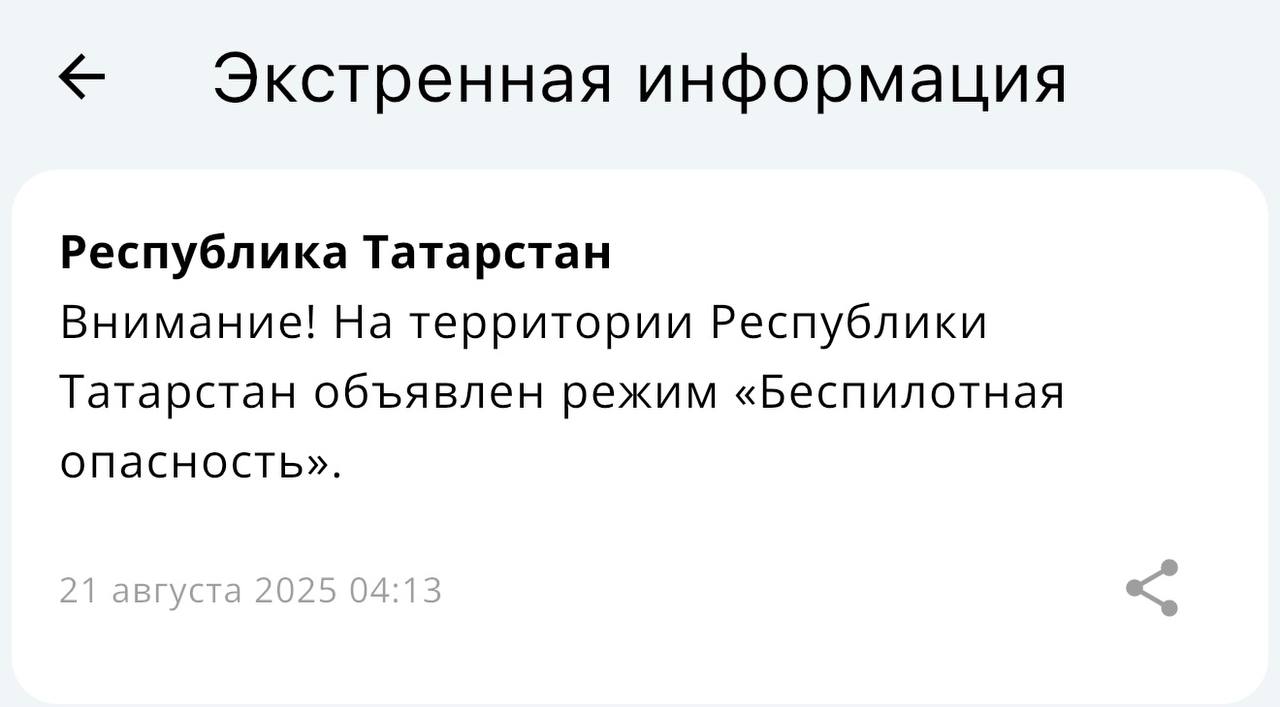 Который день подряд утро жителей и гостей Татарстана начинается с объявленного режима беспилотной опасности. Сообщение от МЧС России пришло в пятом часу утра.