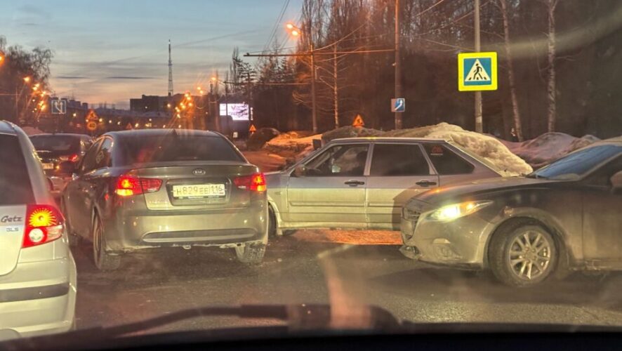 Авария спровоцировала пробку в сторону выезда из Казани