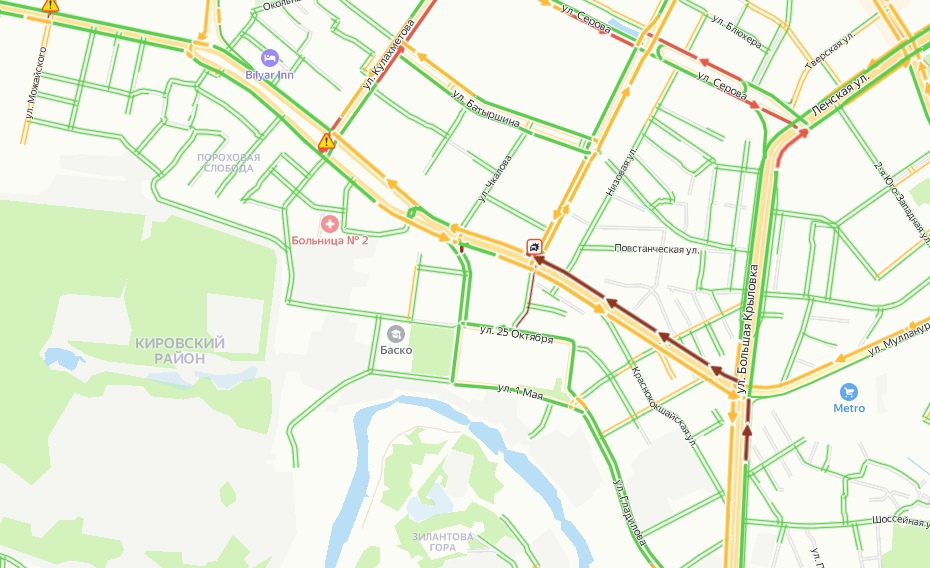 На данный момент перегорожены две полосы из трех, на участке возник затор, который начинается от пересечения с улицей Большая Крыловка. Парализовано движение в сторону выезда из Казани. Итак непростую дорожную ситуацию усугубляет час пик, когда многие горожане возвращаются домой.