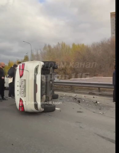Авто завалилось на бок в серьезном ДТП на проспекте Универсиады в Казани