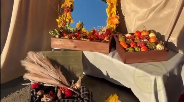 Остановка преобразилась благодаря тематическому декору, создающему атмосферу золотой осени.