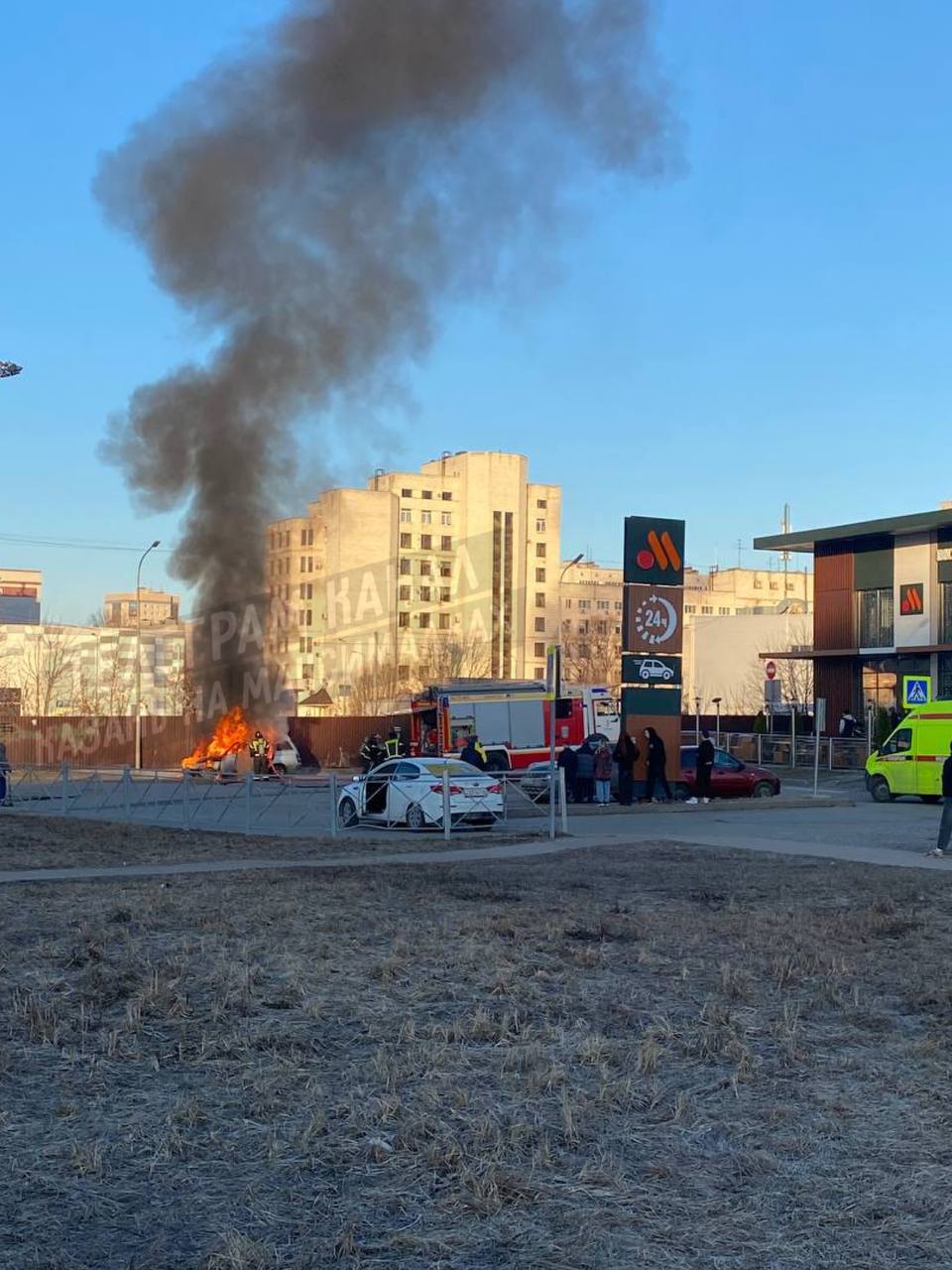 На парковке на улице Вахитова произошел пожар. Автомобиль вспыхнул и практически полностью сгорел.