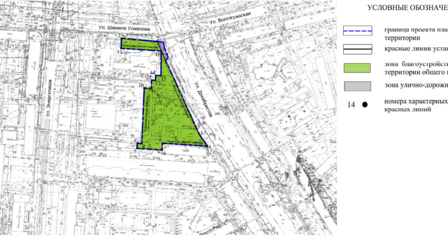 Кроме того площадь, которая будет затронута этим проектом, составляет 0,95 гектара и ограничена улицами Шамиля Усманова, Декабристов и Энергетиков. На этой территории сейчас нет жилых домов, но есть несколько зданий, которые будут снесены.