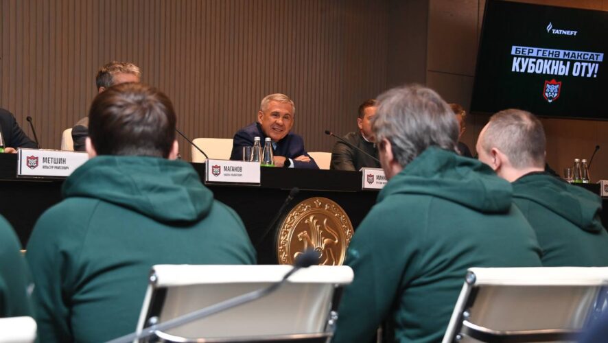 Раис Татарстана также поделился, что иногда даже телевизор переключает, чтобы не спугнуть удачу, сопутствующую игрокам. Минниханов всегда был заядлым болельщиком казанского клуба и поддерживал «Ак Барс» в самые трудные минуты. Встреча с клубом перед плей-офф уже стала традицией для раиса республики, она проводится каждый год. Сегодня на встрече с игроками присутствовал также бывший главный тренер «Ак Барса» — бессменный Зинэтула Билялетдинов, с которым команда трижды стала обладателем Кубка Гагарина.