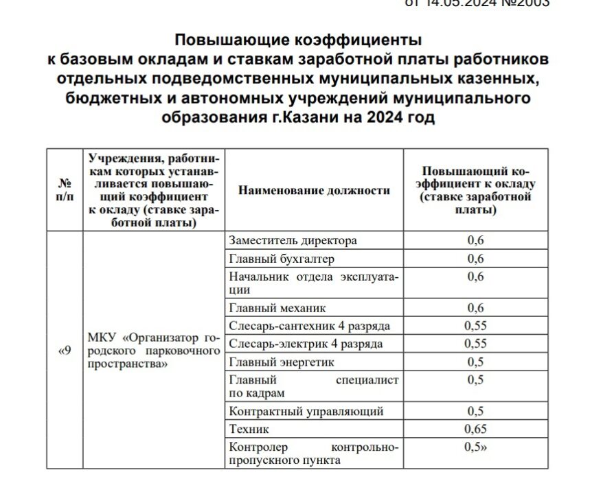 Так, прибавку к окладам получат работники МКУ «Организатор городского парковочного пространства», их размер возрастёт на 0,6.