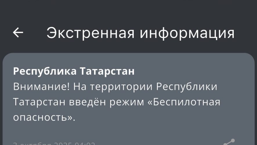 Четвертый раз за неделю в Татарстане вводится режим беспилотной опасности. Сообщение от МЧС России поступило около четырех утра.