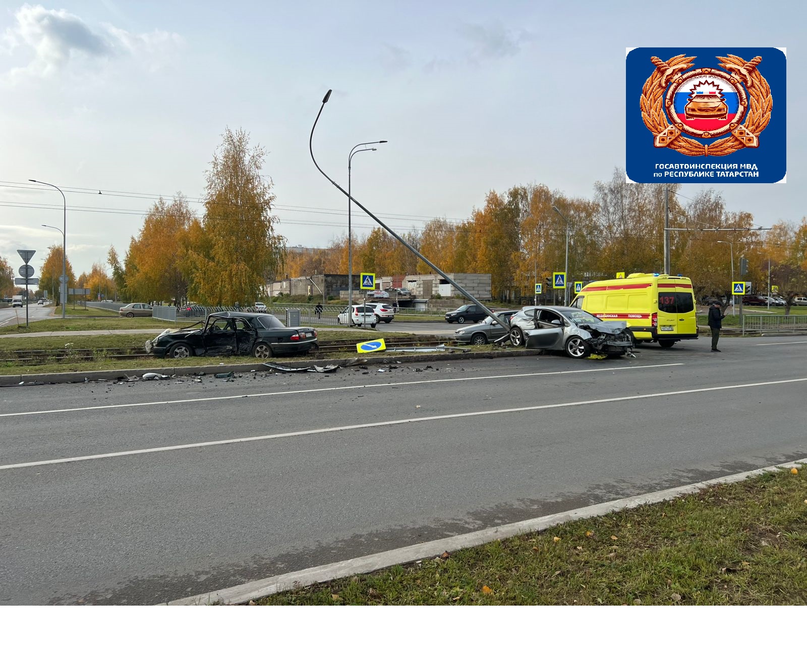 Известно, что иномарка столкнулась на перекрестке с «Волгой» под управлением 41-летнего водителя. Последний, по предварительным данным, двигался по проспекту Яшьлек со стороны Московского в направлении Машиностроительной. Женщина на Opel ехала к Автозаводскому. Столкнувшись с отечественной легковушкой, иномарка врезалась в опору освещения.