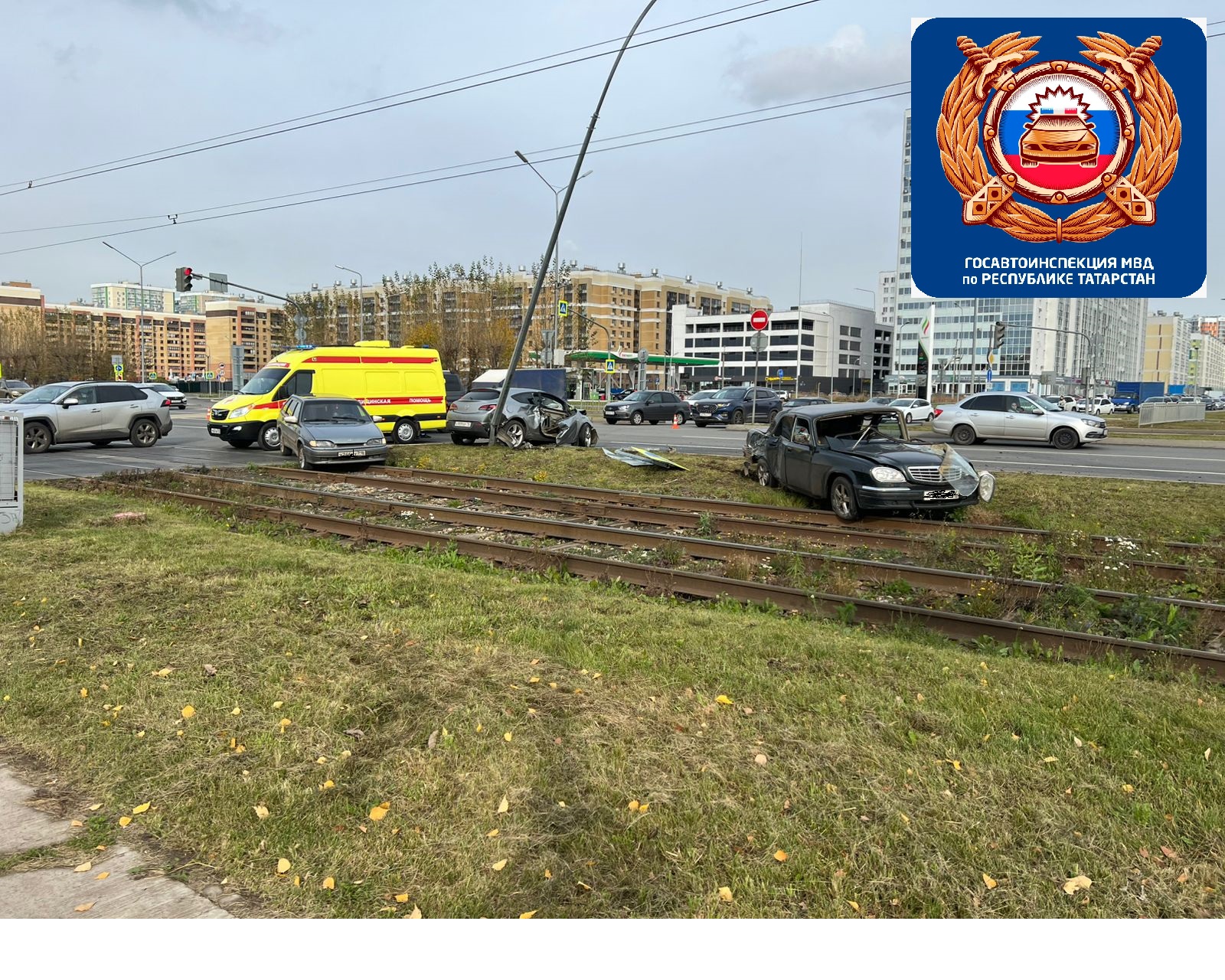 Известно, что иномарка столкнулась на перекрестке с «Волгой» под управлением 41-летнего водителя. Последний, по предварительным данным, двигался по проспекту Яшьлек со стороны Московского в направлении Машиностроительной. Женщина на Opel ехала к Автозаводскому. Столкнувшись с отечественной легковушкой, иномарка врезалась в опору освещения.