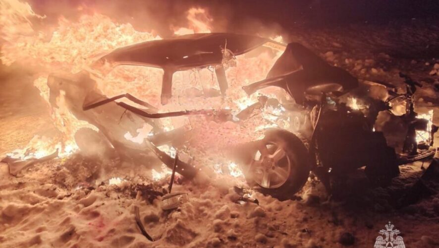 Прибывшие на место пожарные оперативно справились с возгоранием. В легковом автомобиле находились четыре человека — три мужчины и одна женщина. Все они погибли.