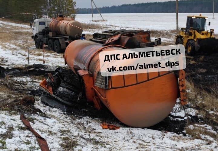 В Татарстане на дороге между Сарманово и Заинском, произошло серьезное дорожно-транспортное происшествие с участием большегрузного автомобиля-цистерны. Видео с места аварии появилось в социальных сетях.