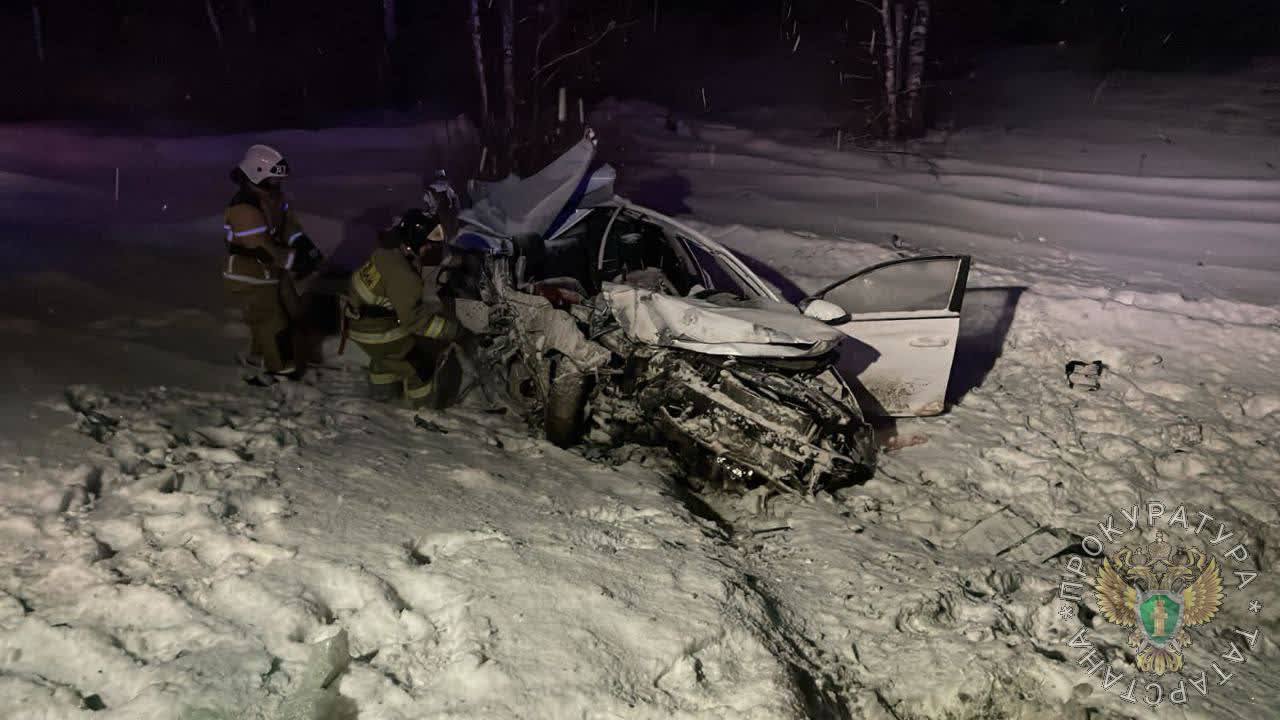 Трагедия произошла накануне около 21:40 на трассе М7 в Елабужском районе Татарстана. Как сообщает прокуратура РТ, по предварительной информации, водитель автомобиля Hyundai Solaris не справился с управлением, выехал на встречку, где столкнулся с грузовиком дорожных служб. От мощного удара легковушка вылетела в кювет.