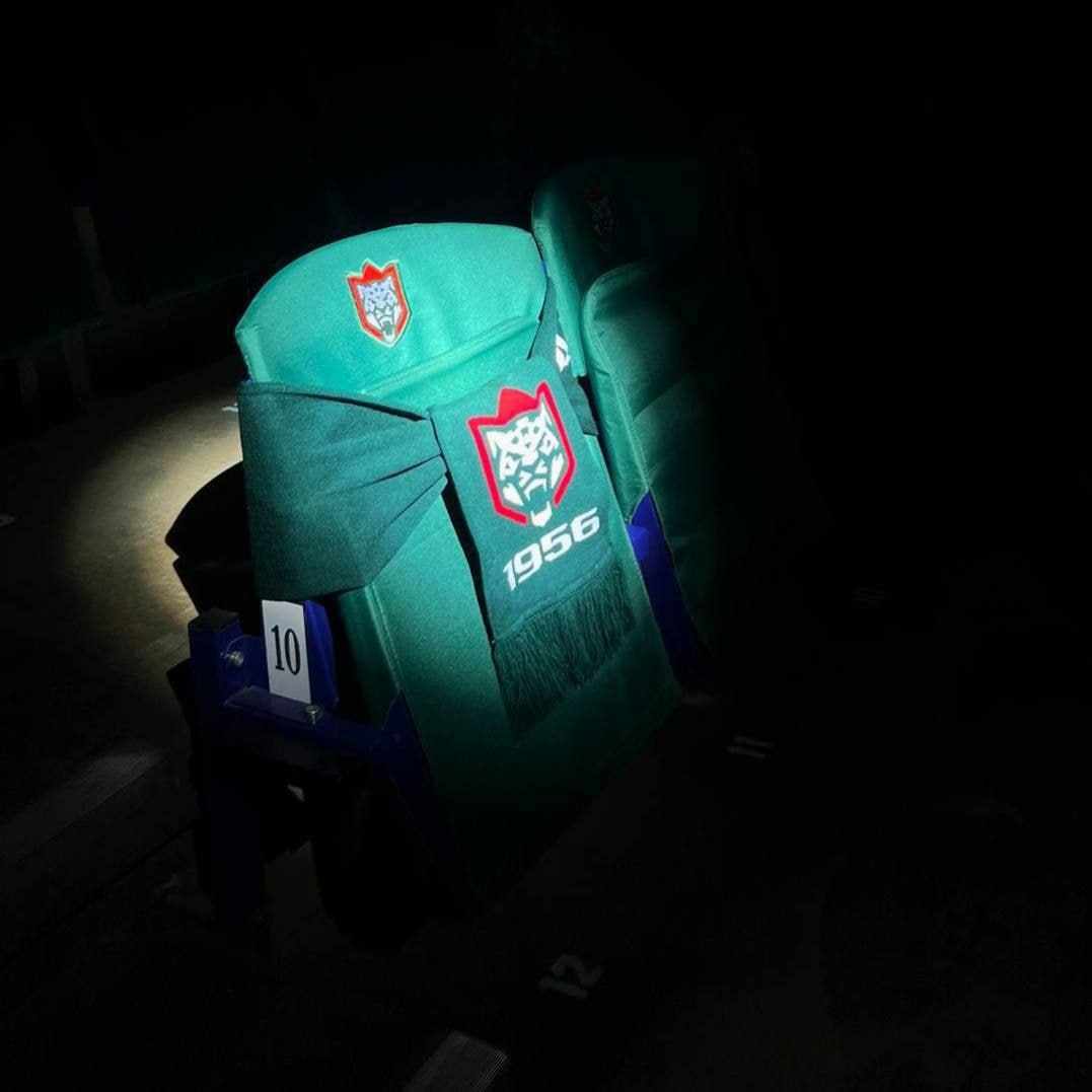 На «Татнефть-Арене» подсветили кресло одного из самых преданных фанатов «Ак Барса» Антона Агафонова, трагически погибшего на Волге в ЧП с катером. Место мужчины было не только подсвечено, но и обвязано клубным шарфом.