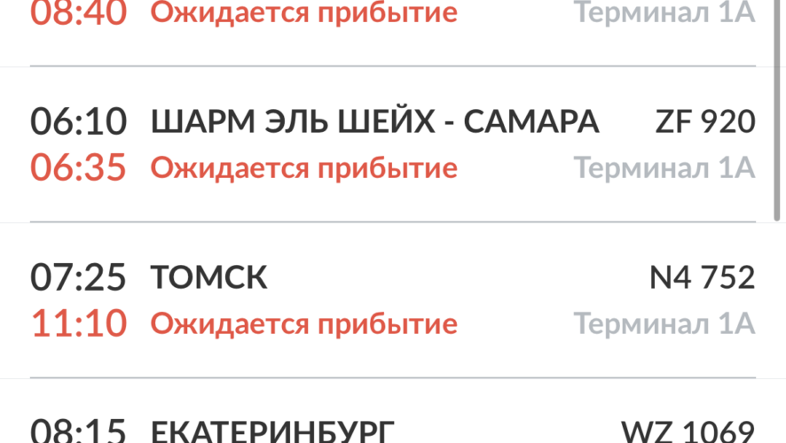 Судя по онлайн-табло аэропорта, задерживаются с прибытием девять рейсов — из Томска, Нижневартовска, Бишкека, Шарм Эль Шейха, Душанбе и Екатеринбурга.