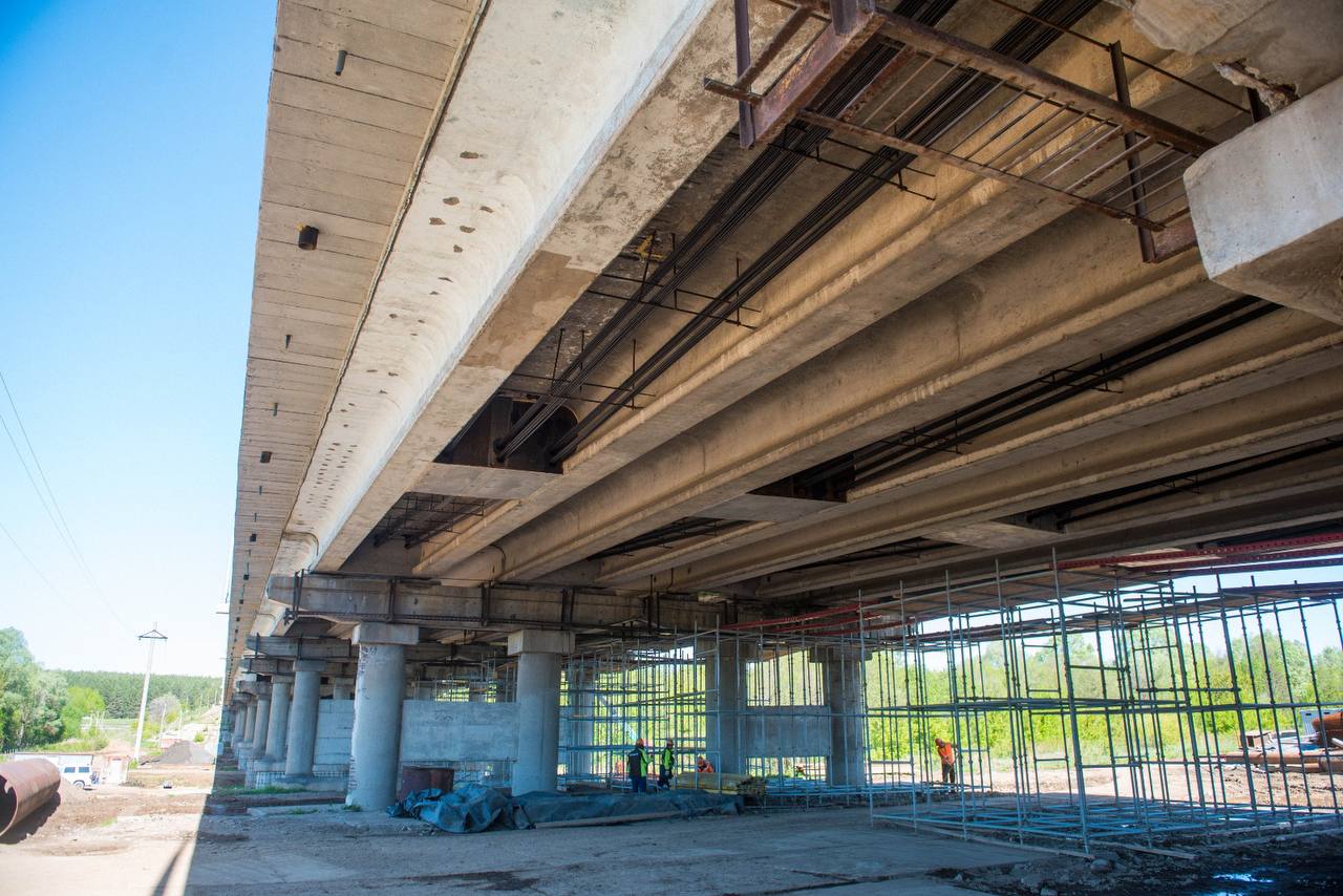 Сейчас специалисты усиливают пролетное строение моста, а также его опоры, обустраивают накладную плиту и шкафную стенку. Чтобы открыть движение по всем четырем полосам, дорожники обещают завершить работы к началу осени.