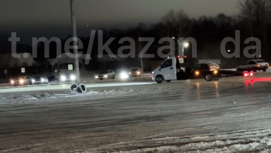 Дрифтующий на льду эвакуатор сняли на видео казанцы