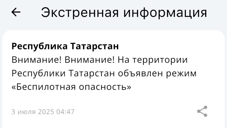 Утро четверга, 3 июля, для жителей Татарстана началось с объявленного режима беспилотной опасности.