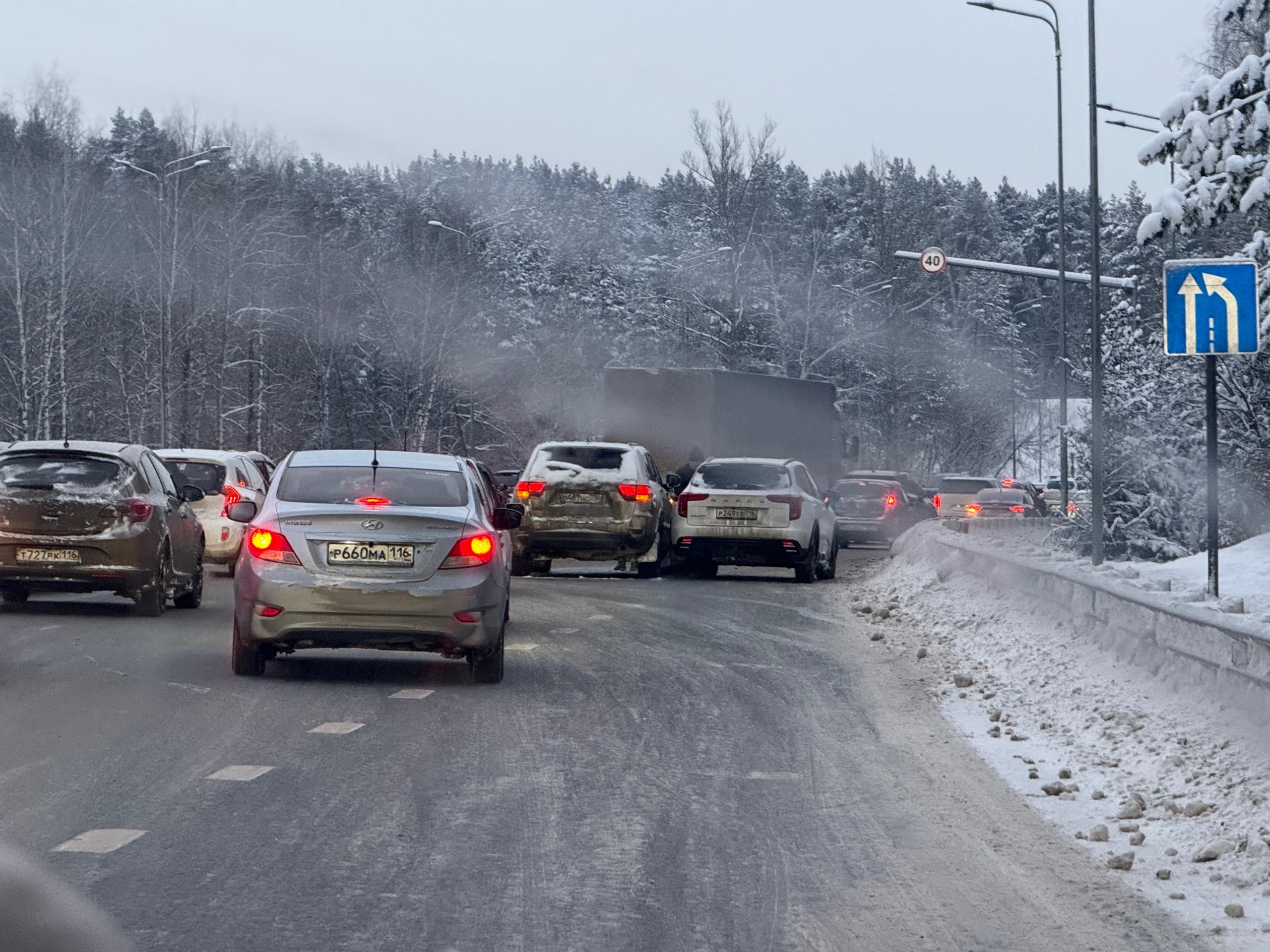 На Горьковском шоссе два внедорожника не поделили дорогу и парализовали движение в Казань. Об этом сообщают очевидцы дорожно-транспортного происшествия.