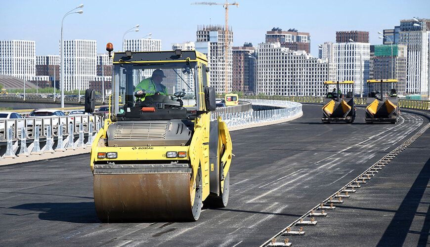 На сегодня объём выполненных работ составляет 60%. Дорожные службы работают с опережением графика — на объекте каждый день трудятся 42 рабочих и 10 единиц спецтехники.
