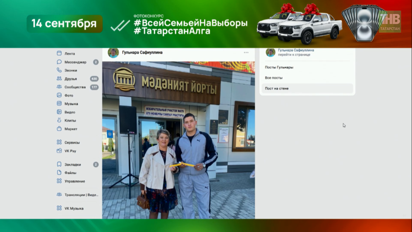Призы включают 11 iPhone 16, два семейных автомобиля Sollers ST8 и бытовую технику (аэрогрили, пылесосы-роботы). Условия: семейное фото у участка с браслетом (получаемым после бюллетеня) с видимым входом, публикация в «ВКонтакте» с хэштегами #ВсейСемьейНаВыборы #ТатарстанАлга до 20:00. Ознакомьтесь с правилами в сообществе «Татарстан Алга». Завершение – 21:30.