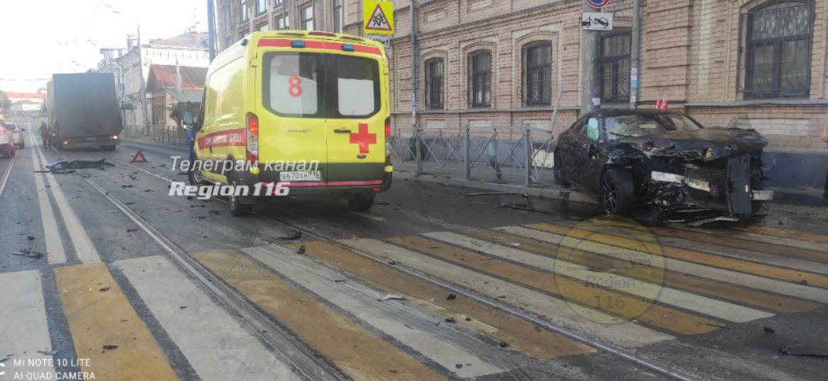Серьезное ДТП произошло сегодня утром на улице Парижской Коммуны в Казани. Здесь дорогу не поделили фура и внедорожник Mercedes. Удар был такой силы, что «баварца» выкинуло с дороги, он снес часть забора и остановился лишь на тротуаре.