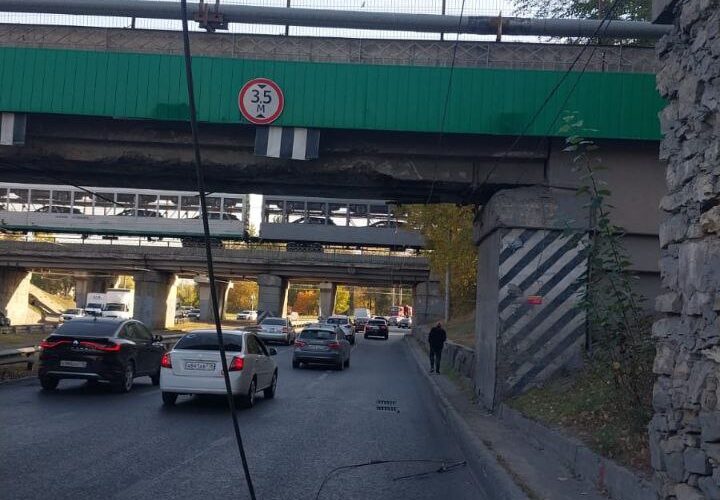 — На путепроводе Воровского по пути следования с ул. Дементьева в направлении остановки «Северный вокзал» крупногабаритный транспорт сторонней организации повредил контактную сеть и уехал с места. Приостановлено движение троллейбусного маршрута №13, — сообщили в пресс-службе предприятия.