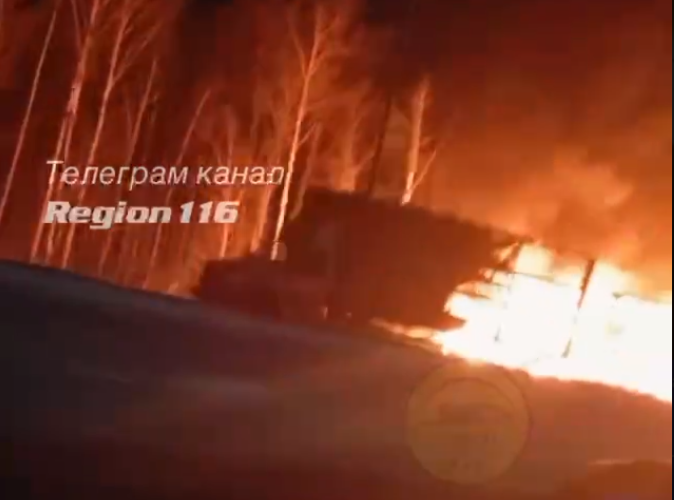 В Татарстане на трассе Шали загорелась фура. Очевидцы опубликовали видео с места пожара в социальных сетях.