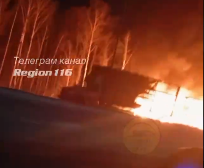 В Татарстане на трассе Шали загорелась фура. Очевидцы опубликовали видео с места пожара в социальных сетях.