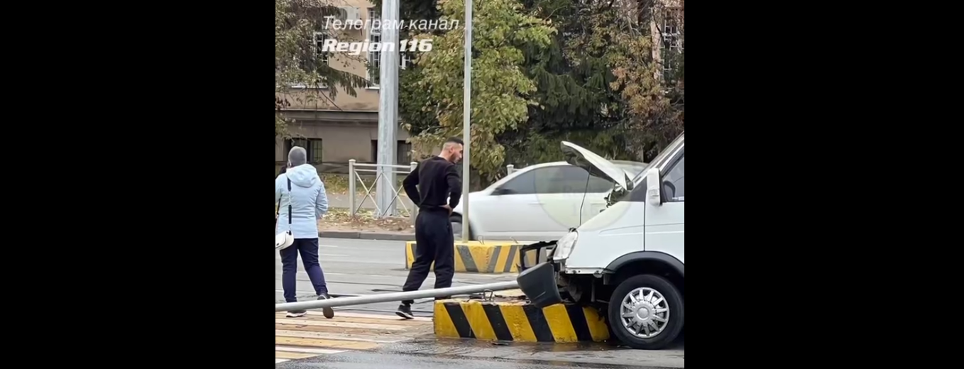 Сообщается, что «ГАЗель» влетела в столб, уходя от столкновения. Судя по всему, она перекрыла трамвайные пути, тем самым заблокировав их движение.